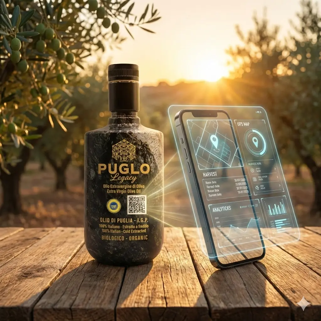 Oggi, Puglo Legacy raccoglie questa eredità pesante e preziosa. Non abbiamo cambiato il modo di fare l'olio – quello resta fedele alla tradizione del 1949 – abbiamo cambiato il modo di raccontarvelo. Abbiamo unito l'antica sapienza agricola alla più moderna tecnologia di tracciabilità , per portare sulla vostra tavola non solo un sapore, ma una garanzia.